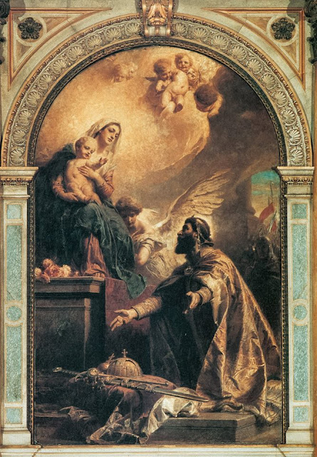 | Gyula Benczúr, S. Stefano offre alla Vergine il suo regno facendone la Patrona Hungariae, XIX sec., Basilica di S. Stefano, Budapest |